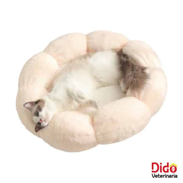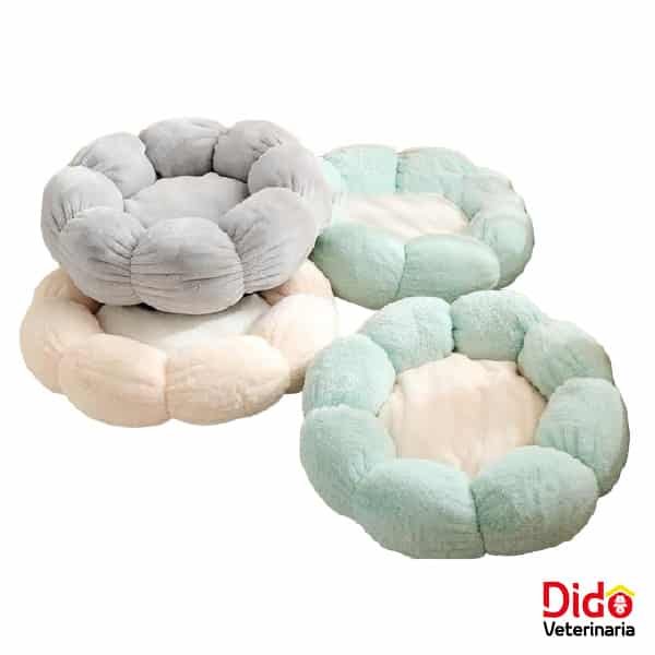 Una cama en forma de flor para perros y gatos pequeños. Hecho de felpa y algodón, parte inferior de tela Oxford, muy suave y cálido. La parte inferior es impermeable, resistente al desgaste y antideslizante, lo que la hace más segura de usar.