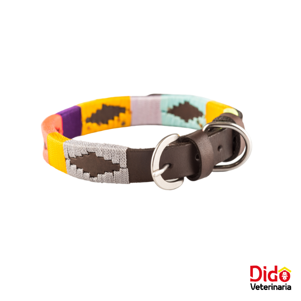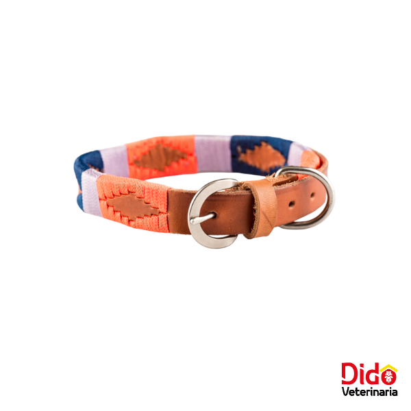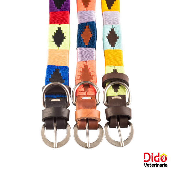 Collar para perros en cuero tejido, de alta calidad, curtido al vegetal, libre de cromo, hecho a mano.
