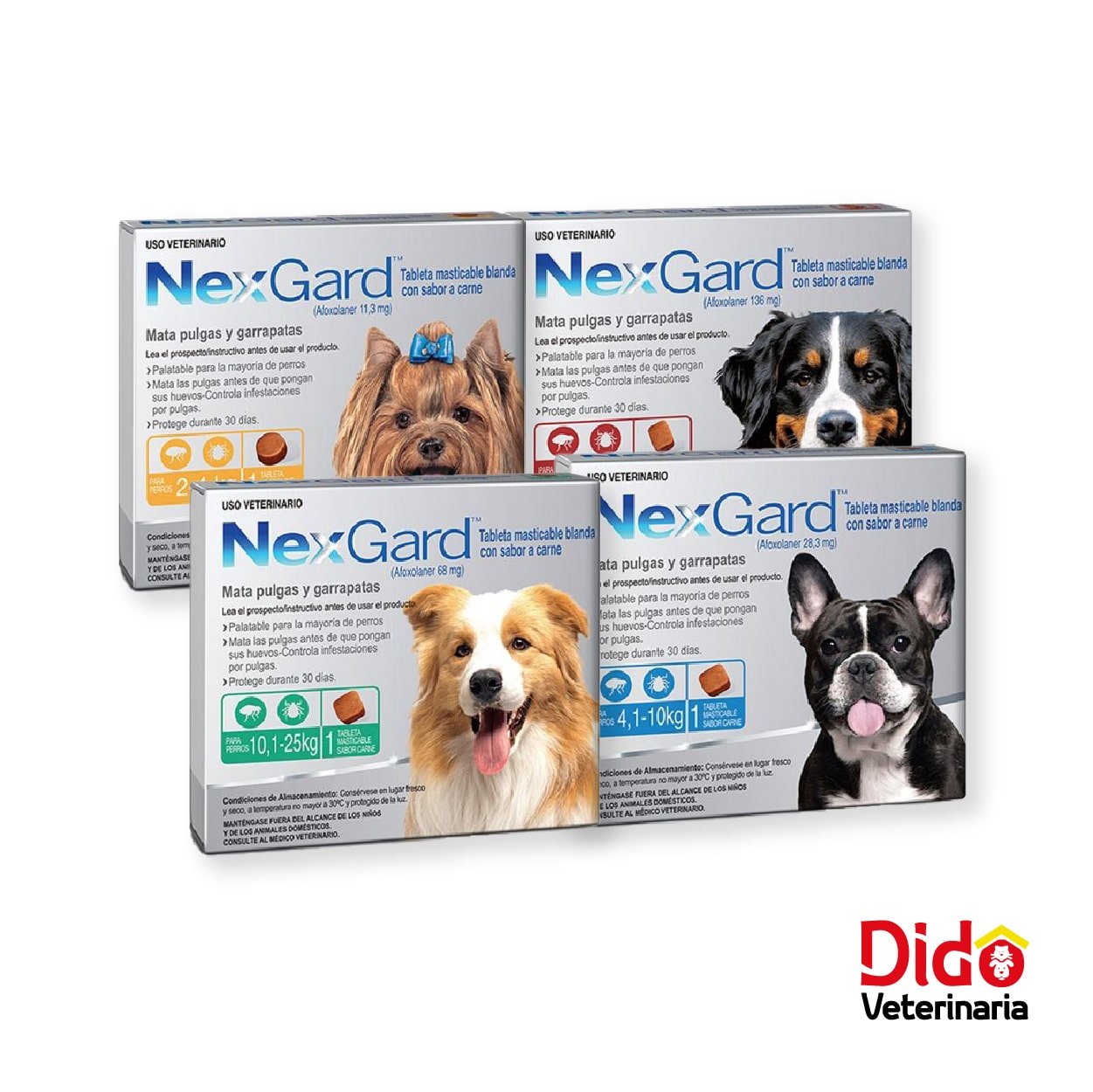 NexGard se administra por vía oral una vez al mes o, según la epidemiología local, a una dosis mínima de 2,5 mg de afoxolaner por kilogramo de peso corporal.