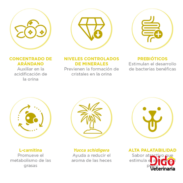 cristales en la orina. Contiene proteínas altamente digestibles para el mantenimiento de