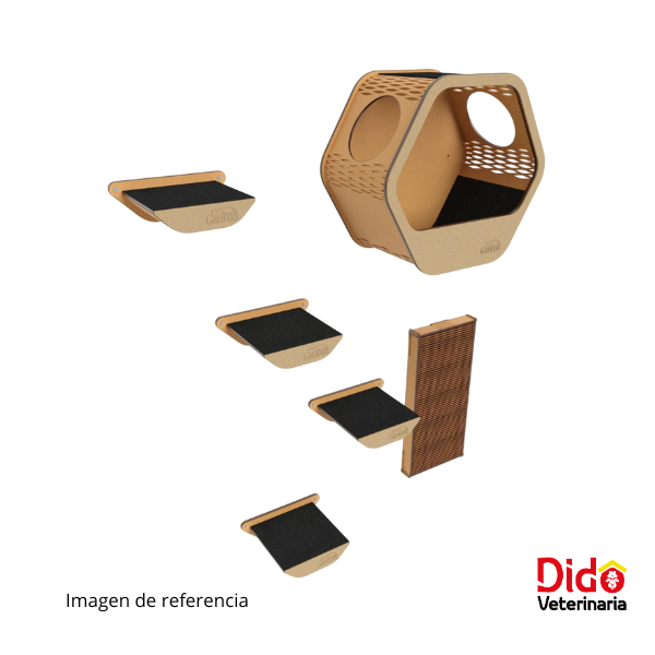 Componentes: 4 peldaños medianos dispuestos para formar un circuito de ascenso que estimula el ejercicio y la movilidad de tu gato.