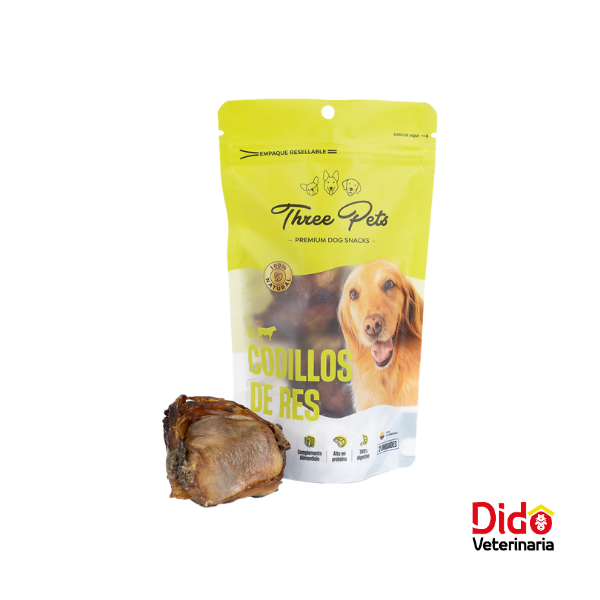 THREE PETS DOG CODILLOS DE RES son hechas de las mejores rodillas de res contiene alto grado de proteína, hierro ,fosforo, magnesio y calcio. Ayuda a fortalecer la mandíbula de tu perro, ideal para todas las razas.